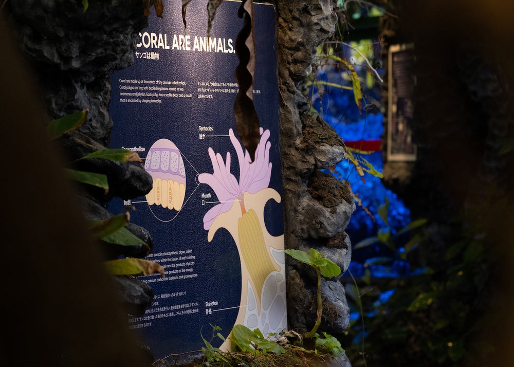 また「サンゴ畑」では、サンゴや海洋生物の命を守るため、持続可能な低エネルギーエコシステムを構築。海水は地下から汲み上げて循環させ、必要最低限の電力で自然環境にやさしい運営を行っています。