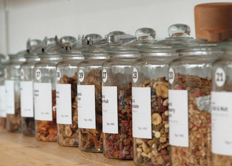 石鹸、洗剤、シャンプーなどの日々の暮らしに欠かせない消耗品を始め、ナッツ、豆類、ナッツ、ドライフルーツなどの食材も全て量り売りで購入していただけます。